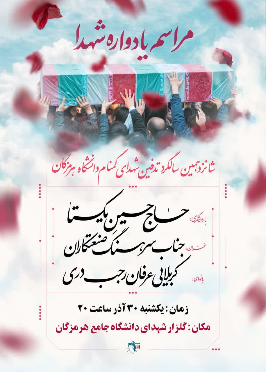 دعوت به حضور در «یادواره شهدای گمنام دانشگاه هرمزگان»: تجدید عهد با راه روشن شهدا
