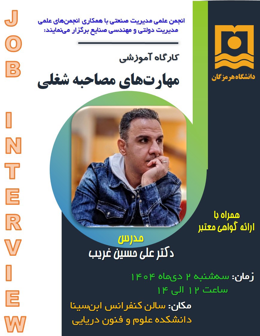 انجمن علمی مهندسی ایمنی و بازرسی فنی دانشگاه هرمزگان با حمایت و همکاری اداره‌ کل استاندارد استان هرمزگان برگزار می‌نماید: