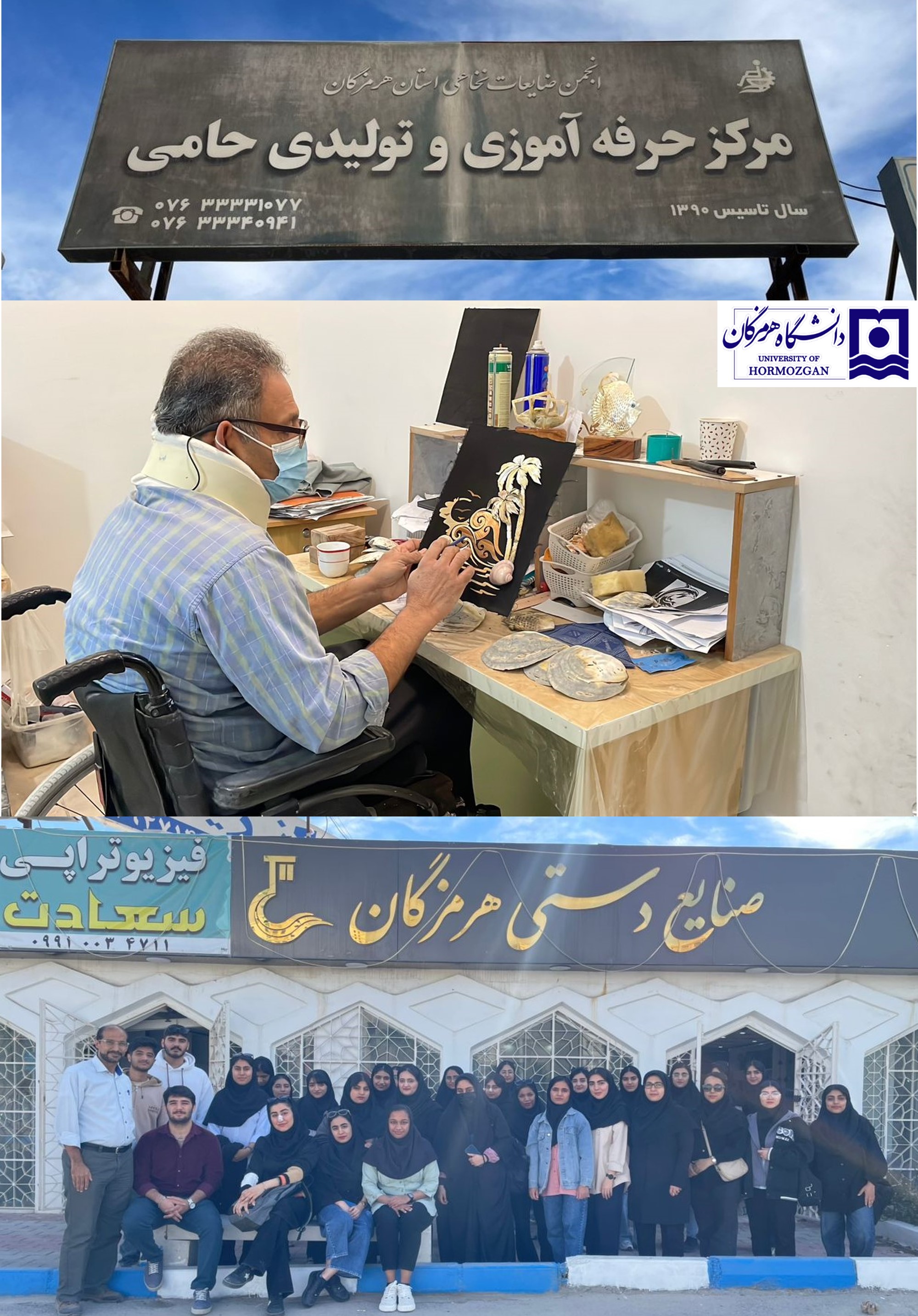 بازدید علمی–آموزشی دانشجویان ریاضی و شیمی دانشگاه هرمزگان از مرکز حرفهآموزی و تولیدی «حامی» با همت انجمنهای علمی و حمایت معاونت فرهنگی و اجتماعی دانشگاه برگزار شد. این برنامه با هدف آشنایی دانشجویان با کارآفرینی اجتماعی و نقش مهارتآموزی در توانمندسازی افراد دارای معلولیت اجرا گردید.