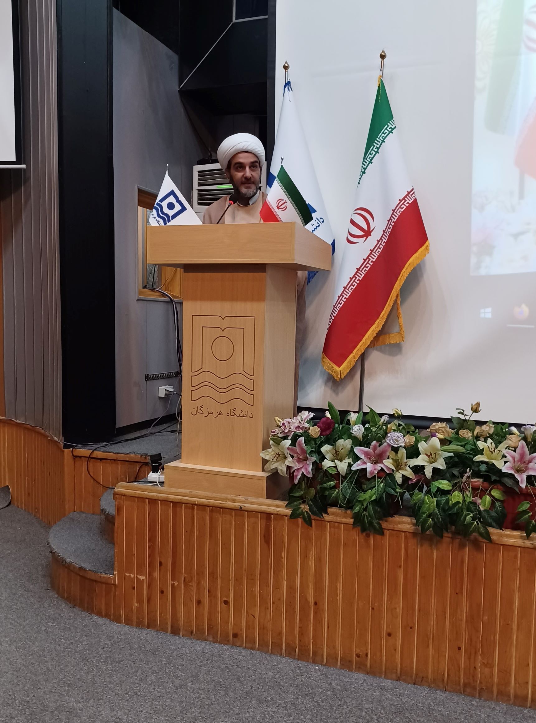 این مراسم با تلاوت آیاتی چند از کلامالله مجید و پخش سرود ملی جمهوری اسلامی ایران آغاز شد. در ادامه، جناب آقای دکتر کریمی، معاون فرهنگی و اجتماعی دانشگاه هرمزگان، ضمن تبریک اعیاد فرخنده ماه شعبان، بهویژه میلاد باسعادت حضرت ولیعصر (عج) و همچنین ایامالله دهه فجر، با خوشامدگویی به حاضران، بر ضرورت پاسداشت این ایام سرنوشتساز و نقشآفرینی دانشگاهیان در صیانت از ارزشهای انقلاب اسلامی تأکید کرد.