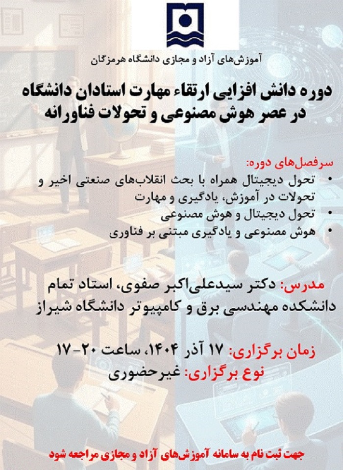 مرکز آموزش های آزاد و مجازی دانشگاه هرمزگان برگزار می کند: